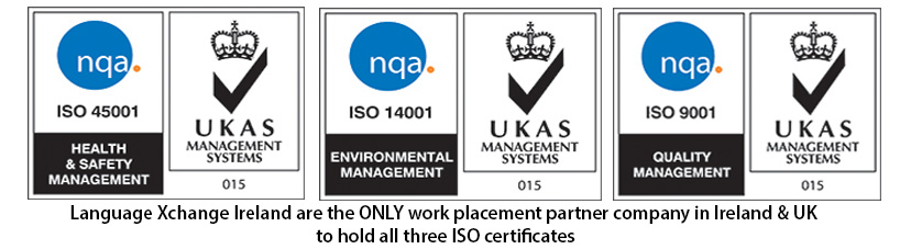 Language change Ireland are the ONLY work placement partner company in Ireland & UK to hold all three ISO certificates